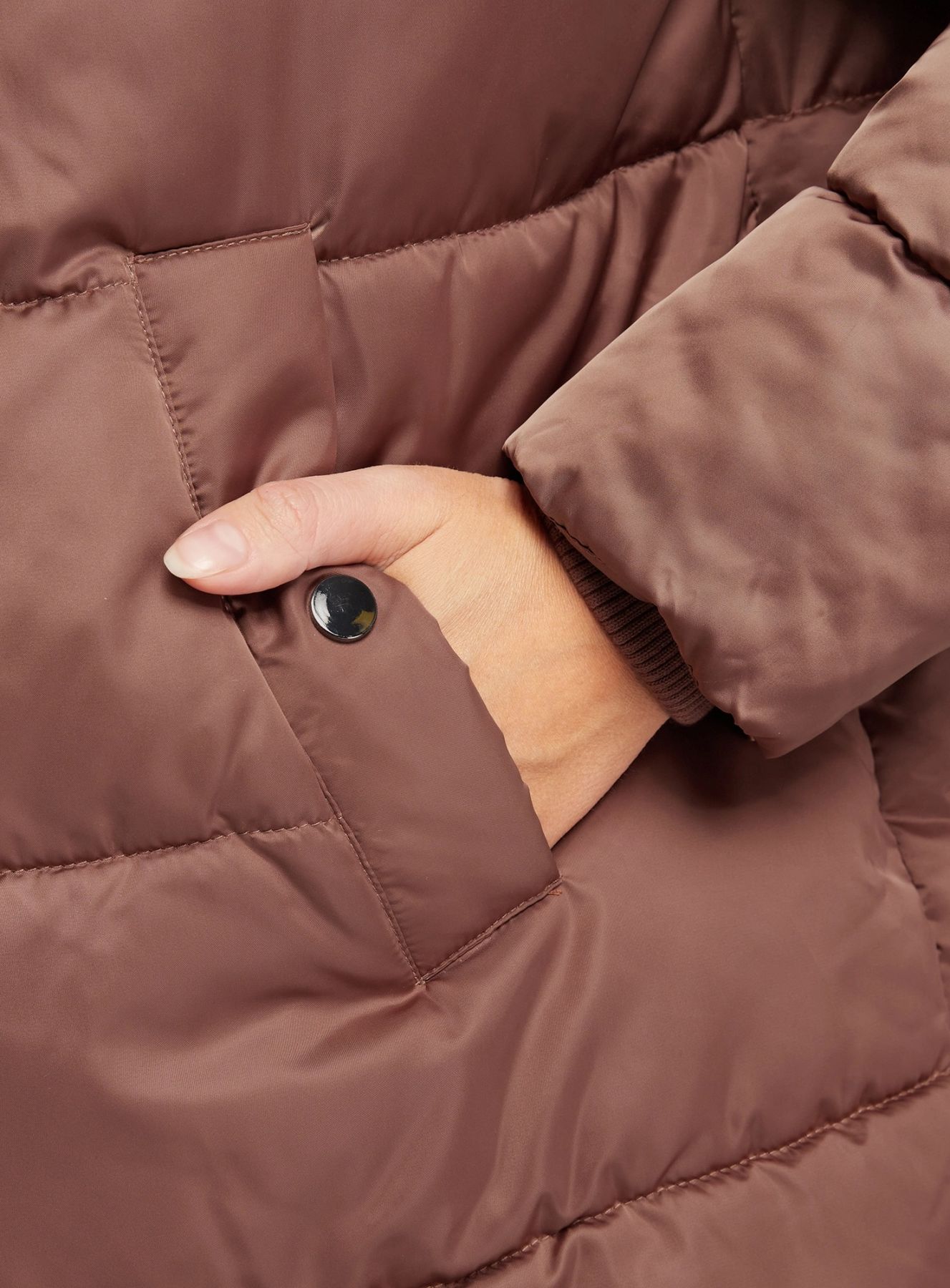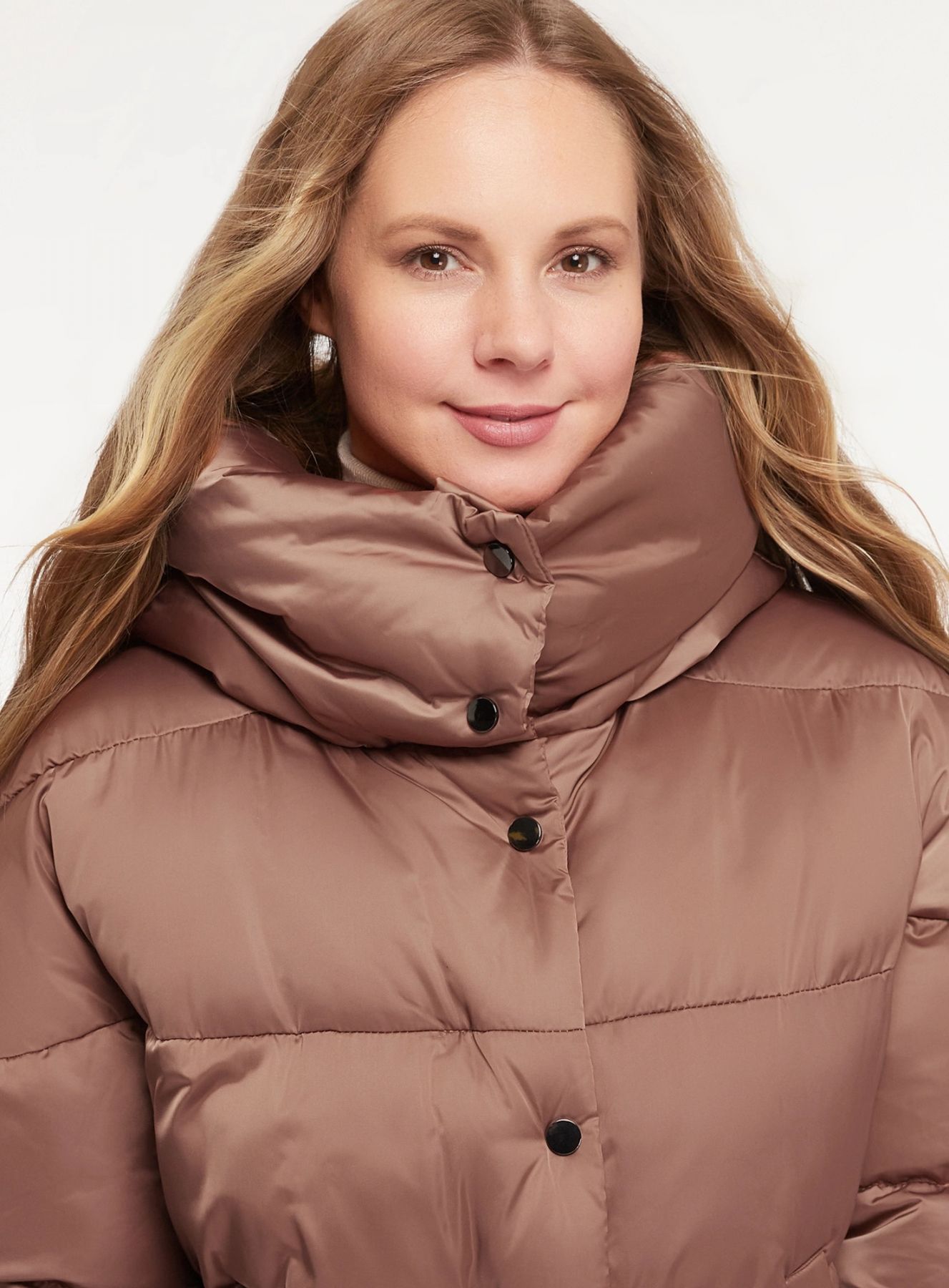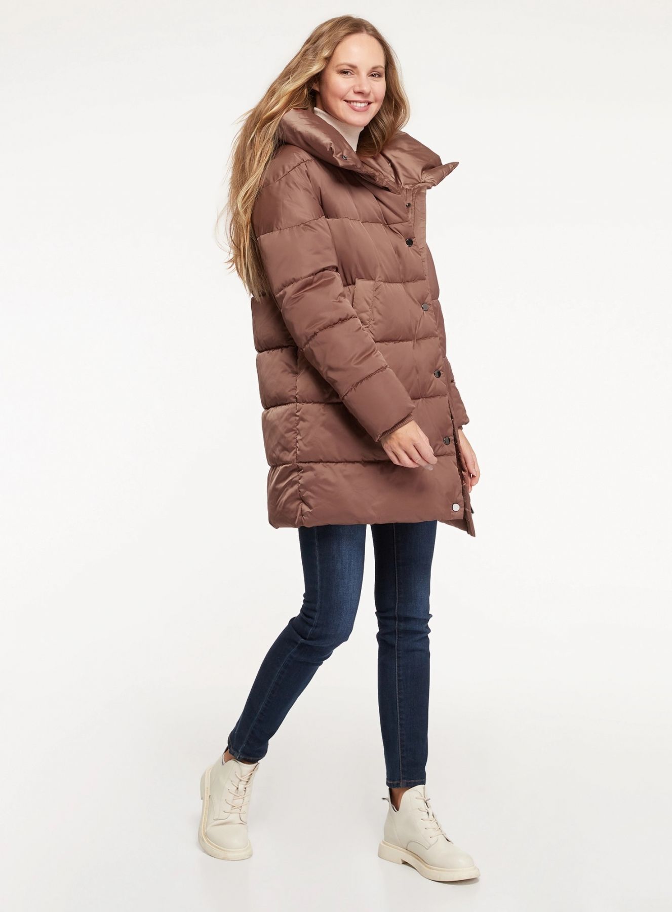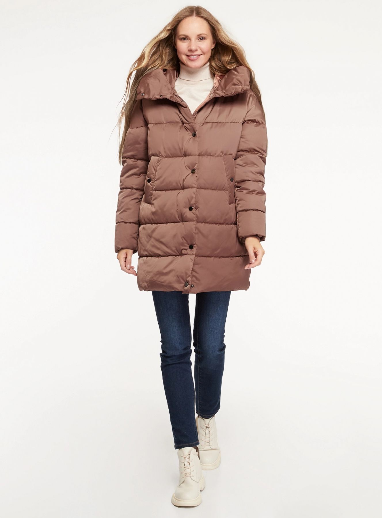 Удлиненная теплая куртка с воротником-стойкой и капюшоном. Приталенная модель длиной выше колена с капюшоном с искусственным мехом полностью закрывает бедра и надежно защищает от ветра и холода. Куртка застегивается на молнию по всей длине, спереди два вертикальных врезных кармана на молнии. Приталенная куртка А-силуэта выигрышно смотрится на фигуре. Утепленная куртка с капюшоном согреет вас в прохладные дни. Она удобная, легкая и практичная. Под такую куртку можно надеть любимые джинсы, классические брюки, платье или комплект с юбкой. Классические сапоги на каблуке, изящные замшевые сапоги, удобные утепленные ботинки на толстой подошве или дутики завершат изящный лук. В этой теплой и уютной куртке вы будете чувствовать себя уверенно и комфортно.